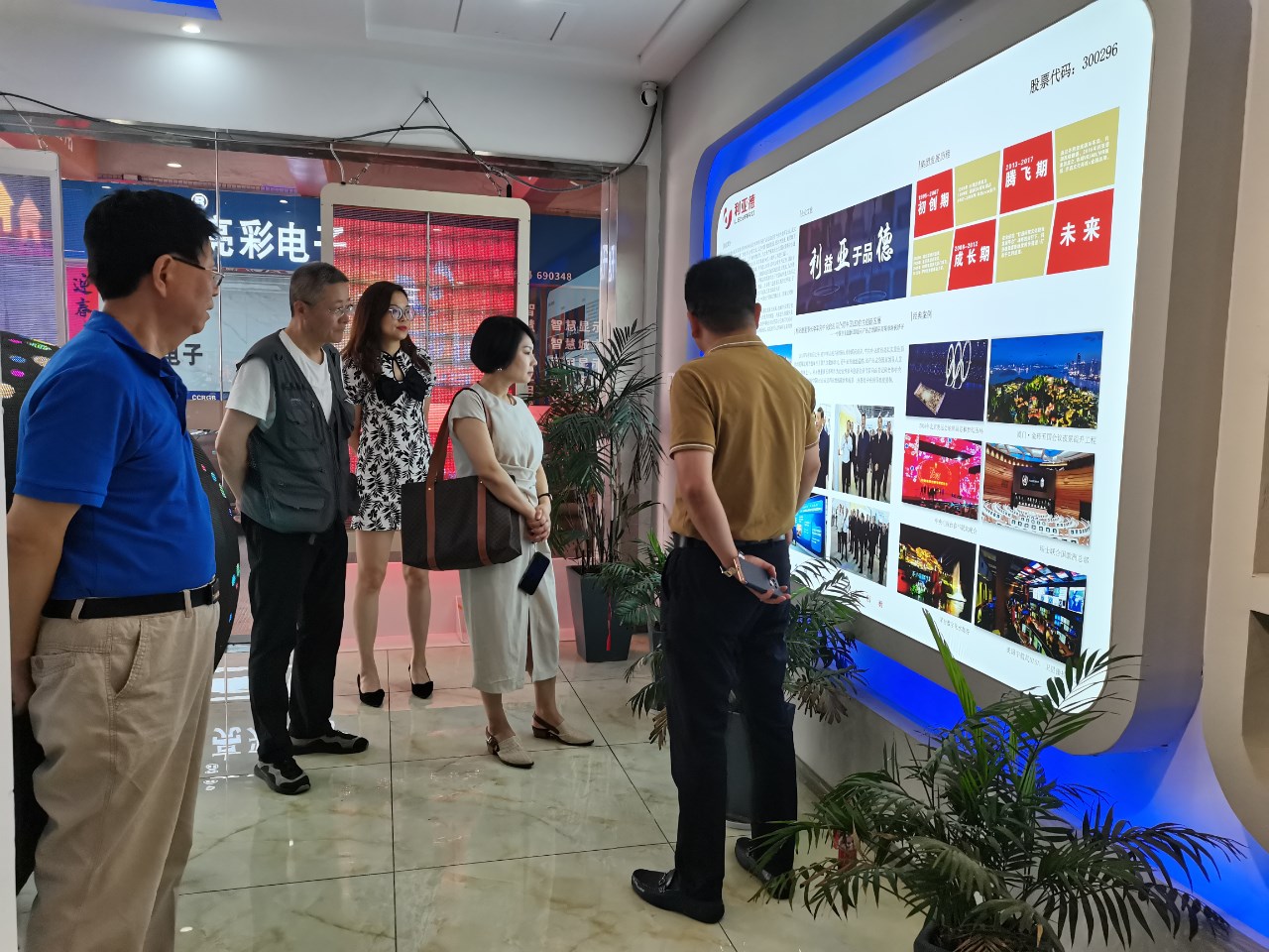 步入展廳,章總向各位領(lǐng)導(dǎo)介紹了LED顯示特色產(chǎn)品,如135寸會(huì)議一體機(jī)、球形屏、地磚互動(dòng)屏、3D屏等,包含多類不同的應(yīng)用場(chǎng)景。