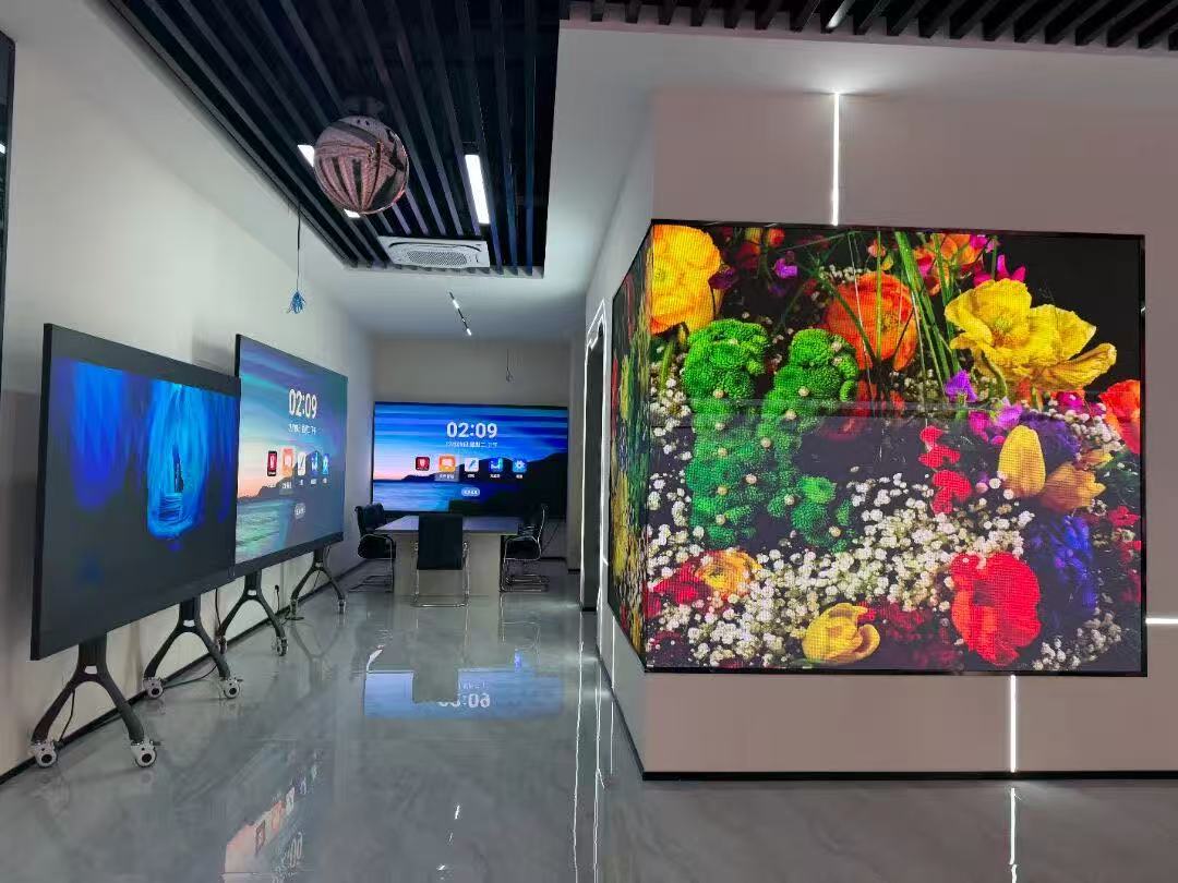 在章總的引導下,洪秘書長與張強顧問一行參觀了亮彩電子智能化展廳。展廳內(nèi)集中展示了柔性屏、貼膜屏、全息屏、變色龍、LED一體機等前沿技術(shù)產(chǎn)品,以及智慧會議、智慧教育、無紙化辦公等場景化解決方案。