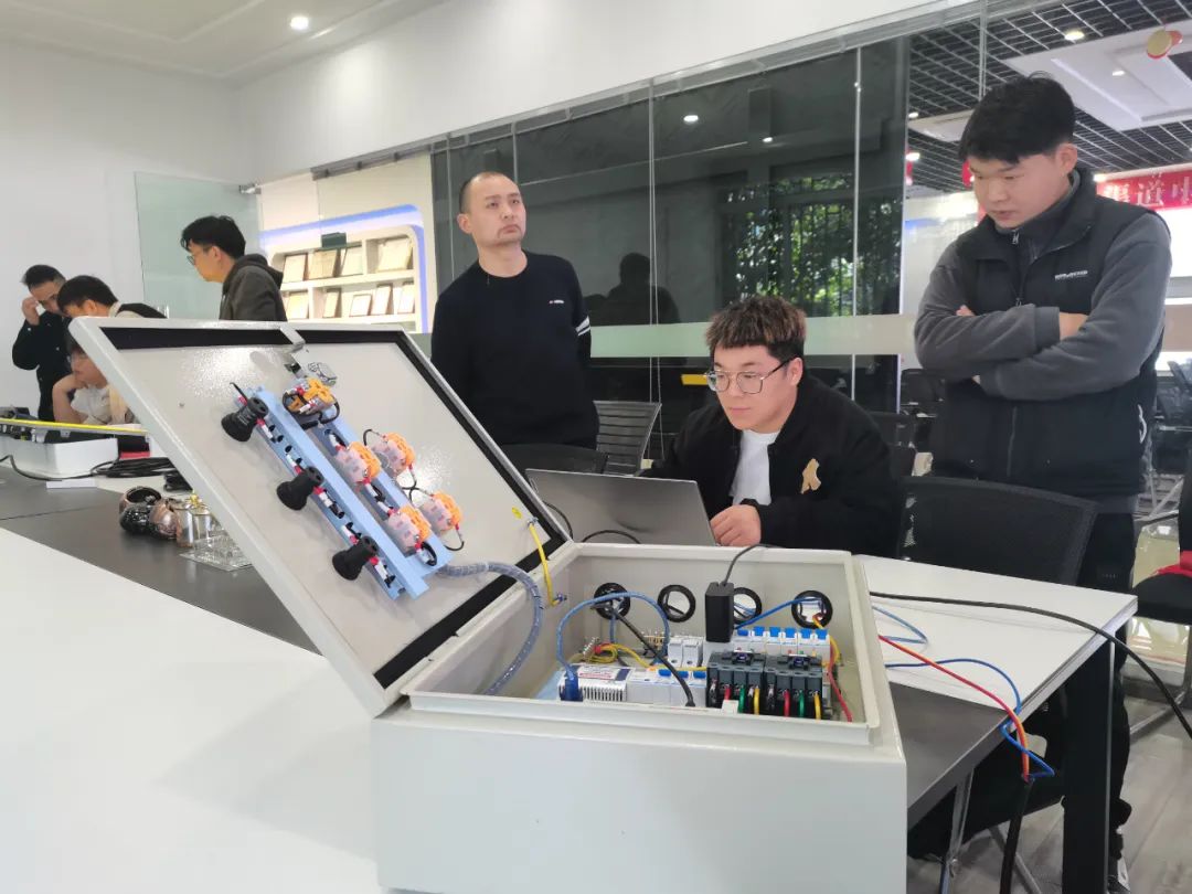 實操考核分為P1.2模組維修、芯片維修、PLC智能配電柜操作、系統(tǒng)調試操作。在實操中,工程師相互取長補短、分享學習心得,在交流中提升自身的專業(yè)知識技能。